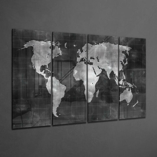 World Map 4 Pieces Mega Glass Wall Art (59"x36")